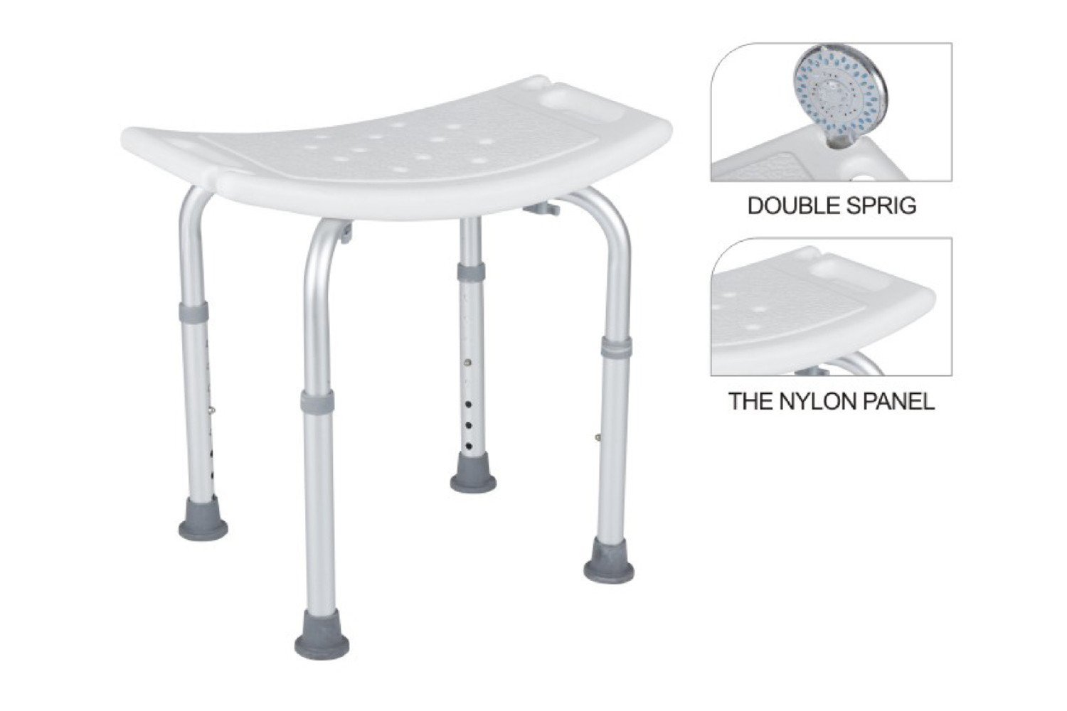 | aluminium & HDPE shower chair,size:51x31x38-55cm. single mail order carton. | |
